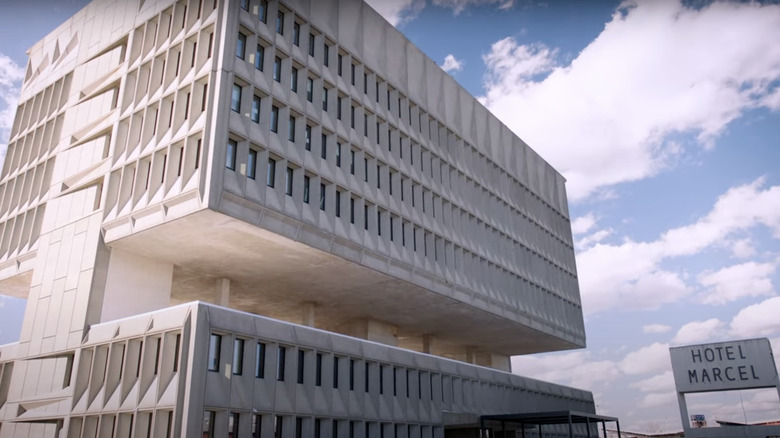 From the outside, the Hotel Marcel in New Haven, Connecticut, doesn't exactly shout eco-friendly, thanks to its brutalist architectural design — it was built in the 1960s to be the headquarters for the Armstrong Rubber Company. However, sustainability played a significant role in converting the former office building on the National Register of Historic Places into a hotel in the 2020s. Thanks to its energy efficiency, it's platinum LEED certified and the country's first certified Passive House hotel. Hotel Marcel stands out in terms of sustainability in multiple ways: all the electricity in the 165-room hotel comes from its solar panels rather than fossil fuels, it composts uneaten food and kitchen scraps, and it bypasses single-use plastic whenever possible.