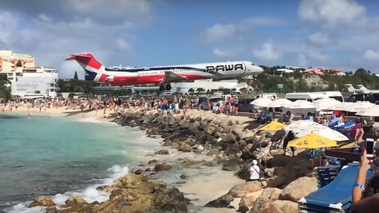 Princess Juliana International Airport, which serves the dual-national island of Sint Maarten/St. Martin, gets a lot of coverage, especially from thrill seekers. That's because the airport is a stone's throw — literally — from a popular beach, and on approach, planes fly very low overhead. The clearance is so little, in fact, that it almost looks like bystanders could touch the undercarriage of the aircraft as it swoops overhead.