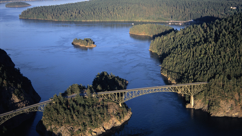 Towering cliffs overlooking the sea. Misty forests filled with dappled light and birdsong. A pair of islands connected by a set of green bridges. This is Washington state's Deception Pass State Park. As hard as it might be to believe, this natural oasis is not far from the crowded destination city of Seattle. As you peer into tide pools, take a kayak out on chilly Bowman Bay, or hike through the hemlock forests to Lighthouse Point, you might have a hard time believing you're only an hour and a half drive from the hustle and bustle of Pike Place Market.