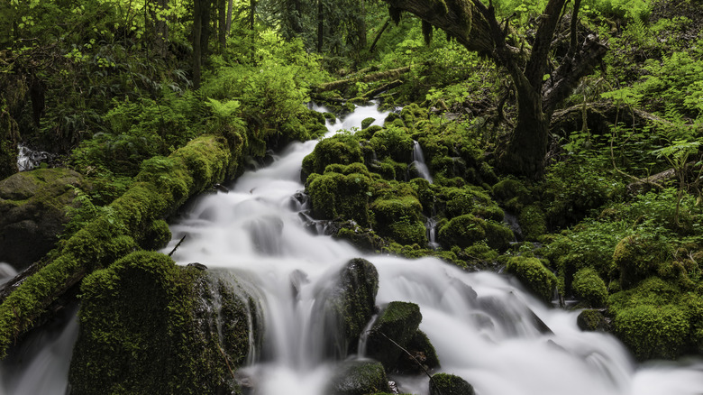 Nature is the name of the game in the Columbia River Gorge, and many people who visit the Carson Hot Springs Resort hike up to Falls Creek Falls. With a trailhead 16.7 miles north of Carson, this 4.4-mile out-and-back trail leads to an awe-inspiring, multi-tiered cascade rushing down over moss-covered bedrock. For those not in the mood to trek, Dog Creek Falls is just an 8-mile drive up the gorge and only requires a 0.1-mile stroll to the viewpoint.