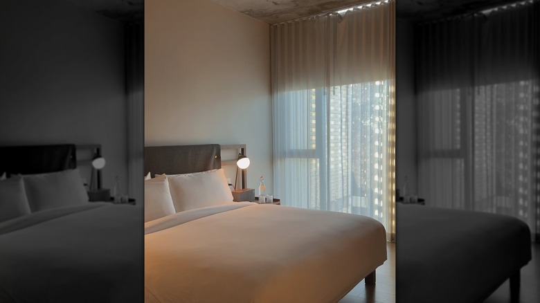 This boutique hotel is also large, containing 71 guest rooms and a dozen suites. Each one features hardwood floors and huge walk-in showers, so you're sure to feel at home no matter which room you choose. Just take it from one former guest, who said their stay was "a fantastic experience from beginning to end," via Tripadvisor. "The concierge and staff at the hotel are incredibly friendly and accommodating," the reviewer added. "The rooms feel spacious and private, with small touches like Bluetooth speakers and a really well-curated selection of snacks and mini-bar, as well as a great line-up of Ursa Major toiletries." The smallest of the hotel's abodes, the River City rooms, are 285 square feet, while the largest, dubbed the Bouldin rooms, span 350 square feet. Need more space? The suites range between 560 and 940 square feet.