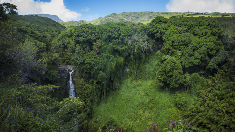 Although the Keoneheʻeheʻe Trail features a peaceful, moon-like landscape, another can't-miss route is the 4-mile Pipiwai Trail in the green, waterfall-filled Kīpahulu District. The trail takes hikers past an ancient Banyan tree, through bamboo forests, and to the 400-foot Waimoku Falls.