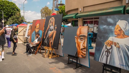 If jazz is more your style, plan your visit during the Leimert Park Jazz Festival. Held each summer at the Baldwin Hills Crenshaw Plaza, the lively festival boasts a jam-packed day of live music with dynamic jazz ensembles, brass bands, African drum circles, renowned DJs, and more. General admission is free with a "Pay What You Wish" option to support artists, and VIP packages are available for meals and other festival perks. No matter what time of year it is, you can head to Aziz Gallerie on the last Sunday of the month for the festival's Sunday Jazz Series. Featuring a rotation of four local jazz bands, the event kicks off at 4 p.m. and culminates in an open jam session at 5 p.m., spotlighting the neighborhood's homegrown talent.