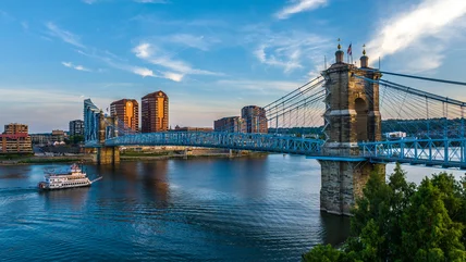 On the south end of the bridge, you might want to get food in Covington, since it's famed as a mouth-watering gateway to the best southern food. From this side, you'll also get great views of the Cincinnati skyline. Look down at the wonderful riverfront parks of Downtown Cincinnati, including the Great American Ball Park and the Smale Riverfront Park. The latter is an essential place to visit after your walk across the bridge, with giant swings, pollinator gardens, and a whimsical carousel. From the Cincinnati end of the bridge, you're also about a 40-minute walk or 20-minute bus ride from Findlay Market, Ohio's oldest public market and a bustling icon of culinary excellence.