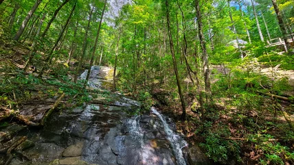 Enjoy the beautiful outdoors along the Benton MacKaye Trail, where you will pass a double waterfall during your hike. The trail takes you through Fall Branch Falls, a gorgeous spot to view natural cascades and capture spectacular panoramic shots. From the Fall Branch Falls trailhead, the round-trip hike takes about 30 minutes, though you can continue farther on the MacKaye Trail for deeper wilderness exploration. While the trail system spans about 300 miles, there are plenty of wildlife-viewing opportunities nearby, as well as places to relax by the water. Hikers may also stumble upon the rustic Toccoa River Swinging Bridge, accessible from the trail. This iconic bridge spans 270 feet and is the longest swinging bridge east of the Mississippi.
