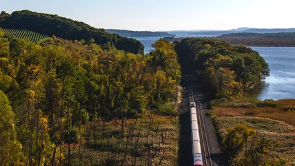 Hop aboard the Amtrak Adirondack train, voted one of America's best scenic train rides by Visit USA Parks, and enjoy some of New York State's most captivating landscapes from a cushioned train seat. Bookended by New York City's Moynihan Train Hall and Montreal's Central Station, this route covers 380 miles and hits stops like Hudson, Saratoga Springs, and Ticonderoga along the way. Whether you're taking a journey between the two metropolises, looking to embrace the slow life in charming hamlets, or just enjoying the picture-perfect views as you curl up by the train window, this route travels daily (in both directions) and makes for a truly memorable experience.