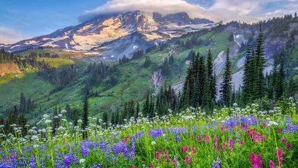 Once that's done and dusted, be sure to linger around Washington for the wildflower season, since there are stacks more places to go. The Central Cascades hold river valleys packed with popcorn flowers and clematis, for example, while the Columbia River Gorge has flower-covered slopes that offer sightings of snowy Mount Hood in the distance.