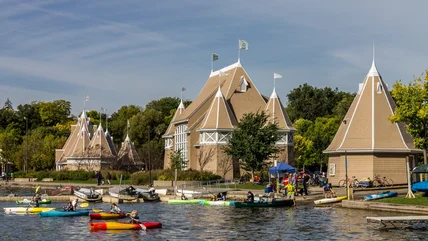 There are a lot of outdoor activities in the Linden Hills neighborhood, especially around Lake Harriet. The Lake Harriet Bandshell, on the northwest corner of the lake, is one spot you can't miss — besides its impressive turrets and great view of the lake, there are free outdoor movies and concerts here during the summer. The 2.8-mile Lake Harriet Loop Trail circumnavigates the lake and is perfect for walking or biking. Get out on the water by renting canoes, kayaks, or pedal boats from Wheel Fun Rentals; in February, visit for the annual Lake Harriet Winter Kite Festival. The 3.2-mile loop around Bde Maka Ska is another great option for getting outdoors in the neighborhood.