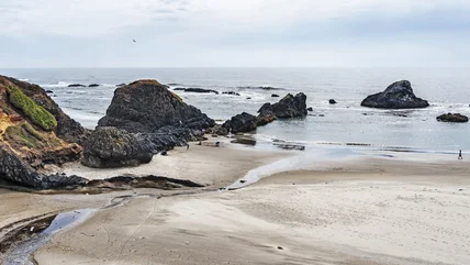 The shoreline at Seal Rock Beach is punctuated by an enormous sea stack aptly named Elephant Rock. Bird-watchers can spot the many birds that use the rock as a coastal rest stop along their seasonal migrations and, birders have confirmed sightings of pigeon guillemots, western gulls, and barn swallows — to name a few. There are also ample opportunities to whale watch at the beach and in nearby areas, ncluding Gearheart, a beach town with whale watching and sandy dunes. You can also take whale watching tours in the region in hopes of spotting some of the upwards of 20,000 whales traverse the Oregon coast each year. About 200 gray whales remain off the coast during summer. You might just spot some whales if you're looking out for "the blow," the shot of breath that can rise up to 12 feet in the air, and "the breach," the awe-inspiring leap whales perform when they catapult themselves from the sea into the air.
