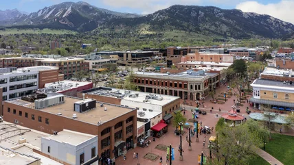 Boulder is located approximately 30 minutes north of downtown Denver in the foothills of the Rocky Mountains, with the stunning backdrop of the Flatirons mountains overlooking the city. Originally founded in 1859, Boulder's nearly 28 square miles of land is home to the University of Colorado's main campus, which was established in 1876, the same year Colorado earned its statehood. The land was home to Indigenous people for over 13,000 years, and the city itself has a rich past. It was once a mining community and an educational retreat hub based on the Chautauqua Movement, which continues to operate in Boulder today and is recognized as a National Historic Landmark.