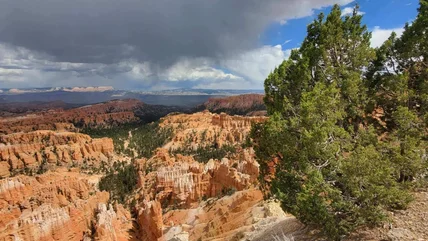 The park's main road runs 18 miles through the canyon, with plenty of lookout points and trailheads along the way. Then, if you'd like to get out of your car and hike below the canyon rim for a different vantage point, check out the 2.9-mile Queen's Garden/Navajo Loop Trail — it's recommended by park staff and the easiest, most day-trip-friendly introduction to the canyon on foot.