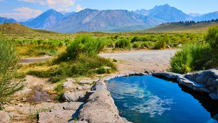 California's Natural Hot Spring Near Yosemite Brims With Snow-Capped Mountain Views