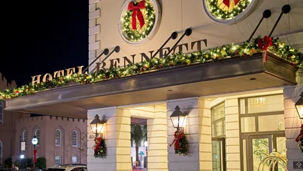 If Bethlehem, Pennsylvania, is '"Christmas City," Historic Hotel Bethlehem should be known as "Christmas Hotel." The moniker would be appropriate given the hotel's transformation every Christmas. With over 25 festively decorated Christmas trees, a gingerbread house replica of the hotel, 35 ornate wreaths, 35,000 dazzling lights, and life-size nutcrackers with their soldiers standing resolutely around the property, guests will find a cheery selfie spot anywhere.