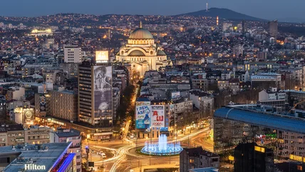Belgrade is the capital of Serbia, a landlocked country in the Balkans. Belgrade Nikola Tesla Airport is the city's major international airport, located about a 30- to 40-minute journey by public transport from the city center. Driving into town will take about 30 to 45 minutes, depending on traffic. Beyond fascinating attractions like St. Sava Cathedral, Kalemegdan Fortress, and the Nikola Tesla Museum, Belgrade offers an exciting party scene and plays host to music events where you can dance the night away.