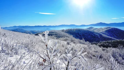 Located in Pisgah National Forest, the Daniel Ridge Loop Trail is a 4-mile loop with winter views of Pilot Mountain and a 150-foot waterfall that's quite stunning in extremely cold weather when frozen. You can also skip the 4-mile loop and take a half-mile trail straight to the falls instead. Bearwallow Mountain is another popular winter hike closer to Hendersonville, a cute and friendly city near Asheville. This popular winter hike is located on private farm land less than 45 minutes from Asheville. Protected by a conservation easement with Conserving Carolina, Bearwallow Mountain offers public access to a 2-mile loop connecting the hiking trail with a fire tower trail, leading to a mountain meadow with 360-degree views. One Tripadvisor reviewer calls it a "short but steep hike to our version of the Sound of Music!"