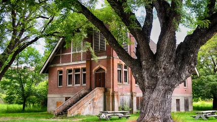 As you explore Elberton, you'll find dilapidated buildings, a rusty railroad bridge, and a quiet cemetery with vegetation overgrowth on the gravestones. Travelers can explore the quiet surroundings and walk around town; however, crossing the bridge is not recommended due to its age and potential structural issues. Not many of the original buildings remain intact, but you can still see the old United Brethren Church in all its red-bricked glory. If you brought your lunch, you can enjoy a quiet picnic at the tables outside the church that still remain. This church also served as the town's schoolhouse during Elberton's busier days.