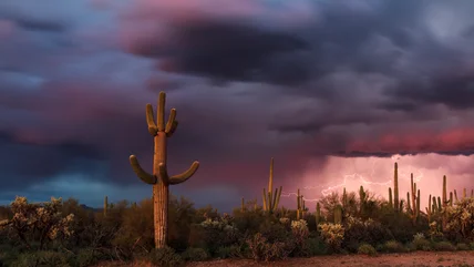 Virtually any of South Mountain Park and Preserve's abundant trails provide excellent immersion into the park's post-rain wonders. However, if you're looking for the best combination of manageable hiking challenges, South Mountain attractions, and exceptional post-rain views, the magnificent Holbert Trail is probably your best bet. Beginning from the parking area near the park's main entrance, the Holbert Trail stretches about five miles up the side of South Mountain. During the route, hikers will pass by a diverse display of desert flora, scenic viewpoints, ancient rock art, and deep canyons, many of which fill with picturesque streams after a rainstorm. The Holbert Trail culminates at the park's unforgettable Dobbins Lookout. Not only is Dobbins Lookout one of Arizona's best sunset-viewing spots, but its panoramic views provide unsurpassed shots of the Phoenix landscape decorated in post-rain greens and retreating clouds.