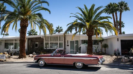 Palm Springs is arguably the most intact mid-century environment in America. The whole town is a living, sun-soaked museum of '60s architecture, glamour, and desert escapism. Neighborhoods like Vista Las Palmas, Twin Palms, Deepwell Estates, and Racquet Club Estates are treasure troves of California's mid-century modern homes designed by icons like Dan Palmer, William Krisel, and E. Stewart Williams. Flat planes, clerestory windows, breeze blocks, butterfly roofs, jewel-tone doors — every detail tells the story of a time when California modernism embraced sunlight and simplicity. Many homes still look exactly as they did in the 1960s, and design lovers can take guided tours of the neighborhoods, especially during Modernism Week.