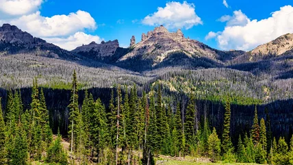 There are 123 mountain peaks over 3,500 meters (11,483 feet) in the Absaroka Mountains. Francs Peak (13,140 feet) is the highest point in this range. Eagle Peak, the highest point in Yellowstone National Park at 11,358 feet (per Britannica), is technically part of the Absaroka volcanic range. This is a mountainous and wild region, with stunning lakes and hiking opportunities. USGS notes that access is more difficult for the Absaroka volcanic range than Yellowstone's, as most of the Absaroka range is in designated wilderness areas. These have more regulations that standard public lands, fewer roads than national parks, and are harder to reach. But if you make the effort to venture there, you'll be rewarded with pristine beauty.