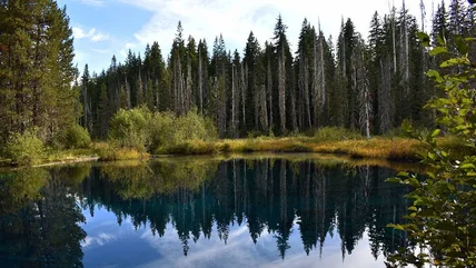 Located about 30 miles south of Mount Hood, Little Crater Lake is a cold, spring-fed body of water immersed in the 1.1 million-acre Mount Hood National Forest. The high-elevation woods around the lake, dense with evergreens, are a natural habitat for a wide variety of bird life, including yellow warblers, nighthawks, osprey, kingfishers, and more.
