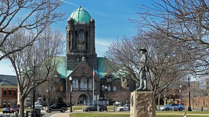 Forming the center of town is the Taunton Green, a tranquil square of manicured lawns framed by trees and public benches, which gives the feeling of being in a small European hamlet. Stately architecture lines the streets surrounding the square, and the soaring dome of the Bristol County Superior Court draws the eye. Dating to the 1890s, with grounds landscaped according to plans drawn up by the sons of notable American architect Frederick Law Olmsted, the Romanesque-style edifice creates a scenic backdrop for photos.