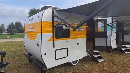 Aptly named the Retro line, Sunset Park RV has a whole line of travel trailers that boast classic midcentury designs with modern amenities. One of its latest is the 2026 Retro 126 Ruby. Its compact and lightweight design is perfect for a couple's camping trip, measuring 16 feet long with a dry weight of 2,480 lbs. Gleaming in a classic canned ham facade, the Retro Ruby comes in cheerful yellow and white, or turquoise and white, and looks like it was rolled straight from the 1950's, complete with black-and-white checkerboard flooring, pine wood cabinetry, and a U-shaped retro dining table that converts into a full-sized bed.