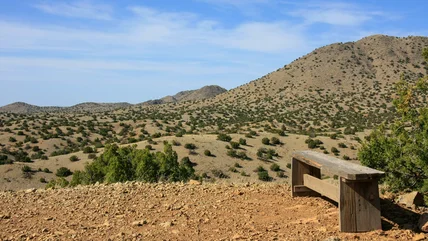 The terrain, as the park's name indicates, is hilly, and hiking at elevations up to 6,100 feet can be challenging. One of the most popular treks is the Cerrillos Hills Historic Park Trail, a moderately difficult 4.5-mile loop. Make sure to wear sunscreen: there's no shade along the trail, which has some steep, rocky segments and takes two hours or more to complete. You'll pass an old mining area from the 1800s (signs explain the history of Indigenous and Spanish groups mining turquoise and galena in the region) and enjoy panoramic views over the mountains and desert below. "A lovely desert walk!" wrote one past visitor, who shared photos of desert plants and wildflowers along the hike on AllTrails.