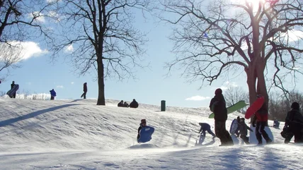 The hill at Whitnall Park is one of the city's designated daytime-only sledding hills. If you'd rather go after dark, check out the sledding hills at Humboldt Park (lit from dusk until 8:30 p.m.) and Currie Park (lit until 10 p.m.)