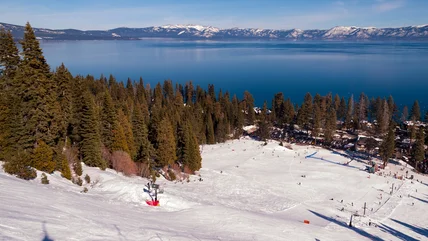 Homewood Mountain Resort, which reaches an elevation of over 7,800 feet, boasts one of the most stunning ski resort settings, as the slopes unfold to the seemingly endless blue of Lake Tahoe. While 85% of the runs are rated as intermediate or higher, beginner skiers still have plenty of terrain to cover. There's also a dedicated beginner's area and children's center, both of which are serviced by "magic carpet" lifts. Young novice skiers can be signed up for children's lessons, held from 10 a.m. to 3:30 p.m., where they can learn the basics of the sport.