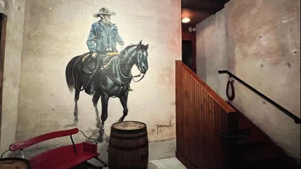 Located at 540 E. Fulton Street, the main entrance to the Horse Inn is hard to miss. However, its original entrance is hidden down a narrow alleyway, further enhancing the speakeasy atmosphere. Inside, the restaurant's hayloft history is apparent, with former horse stalls transformed into dining nooks and wagon wheels repurposed as rustic chandeliers overhead.