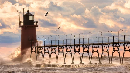 South Haven is a city on Lake Michigan's shoreline, called "Catskills of the Midwest," with many eclectic activities. With just under 4,000 inhabitants, the town is defined by its beautiful lakeside location and the Black River easing through from the northwest before emptying into the lake. Beaches flank both sides of the river's mouth, and the iconic South Haven Lighthouse sits at the end of the southern pier. Many praise the walkability, family activities, perfect sunsets, and the beaches, including one Tripadvisor visitor who described a picnic on North Beach: "This is a lovely area and very safe for families, as is the whole South Haven area."