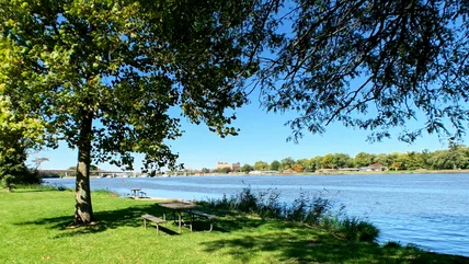 If you want to stay in town, one of the best places to see the Illinois River is the Middle East Conflicts Wall Memorial. The only memorial wall of its kind in America, it creates a small riverside park for reflection and remembrance. A line of towering granite slabs names over 8,000 American men and women who have lost their lives during conflicts in the Middle East, paying tribute to these brave souls. The memorial park has two benches for sitting and reflecting while the Illinois River flows before you. It's a moving experience in Marseilles and one of its most popular on Tripadvisor. While it's a scenic city park, you'll need to venture a little further if you want to find true wilderness escapes and adventure.