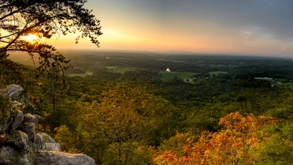 The Appalachian Mountains and the starting point of the famous Appalachian Trail, the longest hiking trail in the world, beckon hikers to Georgia. But this iconic trail, including Preachers Rock, a wildly rewarding hike boasting sweeping mountain views, isn't the only gorgeous spot to hike in the Peach State. The Sawnee Mountain Preserve is less than an hour northeast of Atlanta and its sprawling network of trails, eateries, and parks. The preserve has 11 miles of hiking trails, dense forests, and stunning viewpoints, making it the perfect spot for a sunset hike.