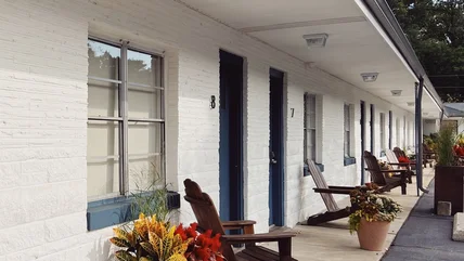 Indiana Dunes National Park is a stunning coastal getaway along the cusp of Lake Michigan in Michigan City, Indiana. Travelers making the trip can stay at a nostalgic roadside hotel just a few minutes down the road at Al & Sally's Motel. This modest property off West Dunes Highway has been welcoming guests since the 1950s. When new owners took over in 2021, they made light renovations while keeping the vintage motor lodge's nostalgic aesthetic intact. The rooms have a fun and novel interior, especially after their updated look – with fresh paint, new flooring, lighting, and mid-century boho decor. However, its contrasting colors and original neon signage still deliver a joyful nod to a vibrant era gone by.
