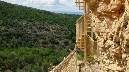 Today, the controversy over Hibben's Sandia Man discovery persists. However, regardless of what is or isn't true, the Sandia Cave is still a remarkable landmark with both incredible views and an interesting story. The cave is accessible as part of New Mexico's beautiful Cibola National Forest, itself an underrated destination where the state's mountains, deserts, and forest ecosystems all converge. The Sandia Man Cave is open to the public year-round (weather-permitting), though getting there is a bit of an ordeal. From the trailhead 30 miles north of Albuquerque, visitors must hike about half a mile to Las Huertas Canyon, climb a concrete staircase up the canyon walls, manage a precarious limestone ledge on the side of the cliff, and then climb up another, steeper spiral staircase to get to the mouth of the cave.