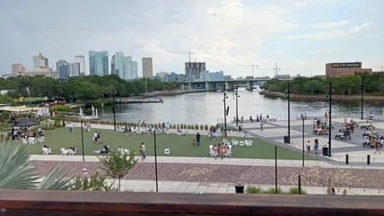 Outdoors, you'll find additional seating, picnic tables, and life-sized chess and checkers boards on the turf lawn. They all create an idyllic setting overlooking the Riverwalk. It's easy to wander over to catch sunset views or explore other nearby waterfront spots like Ulele, a Michelin-recommended native-inspired spot with landscaped patio vibes and house-brewed beer. There's also Stones Throw, a riverfront bar and restaurant with some of the highest-rated seafood in downtown Tampa.