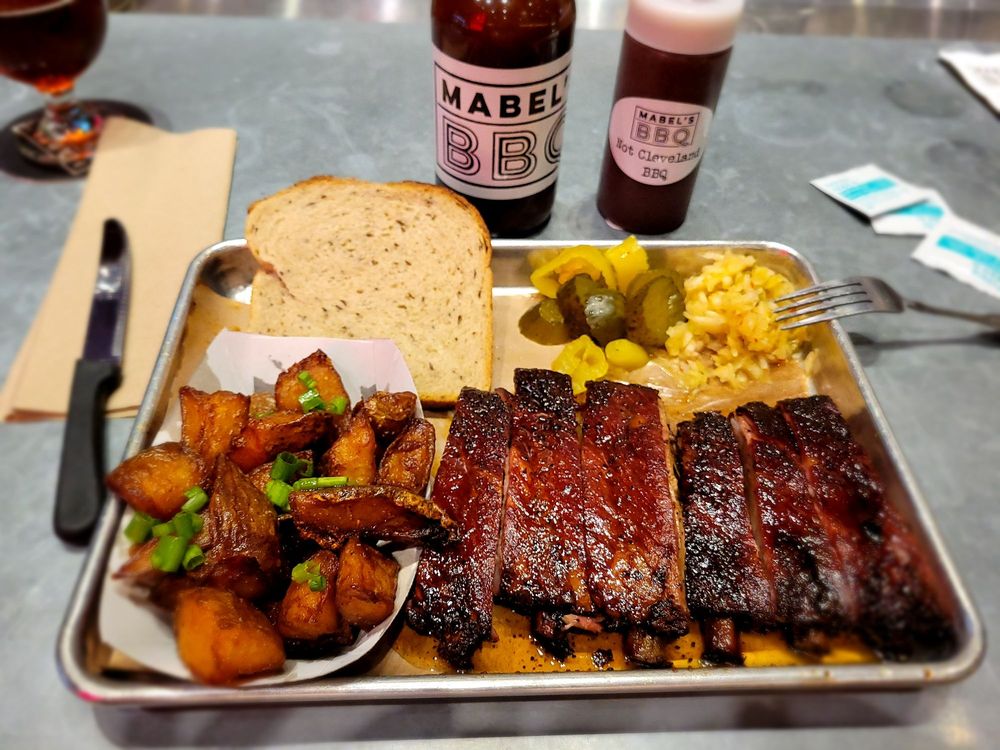 Mabel's BBQ is in one of Cleveland's walkable downtown districts, just steps away from the Cleveland Public Square and a mile from Settlers Landing Park on the Cuyahoga River. It's located on East 4th Street between Euclid Avenue and Prospect Avenue East in a no-frills brick building. Diners can choose to eat in the ambience of the outdoor patio or inside, where everyone shares long cafeteria-style tables with other BBQ fans. One Tripadvisor reviewer said, "Food comes on a tray that sits in the middle of the table, making sharing and sampling easy and fun."