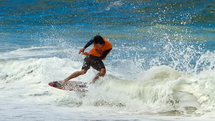 Aliso Beach contains powerful shore breaks that create near-perfect conditions for surfing's sister sport, so it's not unusual to see skilled skimboarders taking turns sprinting toward the water, dropping their boards, and gliding across the surface. It's certainly an entertaining sight to take in while lounging on the sand. For first-time visitors interested in skimboarding, it's worth knowing that the same conditions that make the beach exciting can also be challenging. The waves break quickly and forcefully, and rip currents are possible, so beginners should take it slow and stay close to the shore. Lifeguards are on duty, offering an added layer of safety, but it's still important to be aware of ocean conditions before heading into the water.