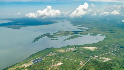 Sitting almost directly along the Earth's equator, Lake Victoria is mostly split between Uganda and Tanzania, with a smaller portion spilling into Kenya. The lake stretches more than 26,000 square miles. Fringed by swathes of verdant jungle and sandy beaches that merge into sweeping slopes, Lake Victoria feels more like a tropical ocean. It's also one of the main sources of the Nile River.