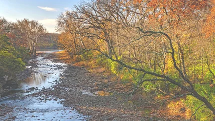 The beating heart of the roughly 4,000-acre park, and the main focus for visitors, is the sparkling Kankakee River, one of the state's cleanest stream, which is also listed on the Federal Clean Streams Register. Adding to its accolades, an 85-mile stretch of the river was also named a National Water Trail, having served as a canoe route between the Great Lakes and the Illinois and Mississippi Rivers for more than 100 years. Today, visitors to Kankakee River State Park can enjoy year-round activities, including canoeing and other water sports on the river, as well as hiking, biking, horseback riding, cross-country skiing, snowmobiling, hunting, and camping in designated areas straddling the river.