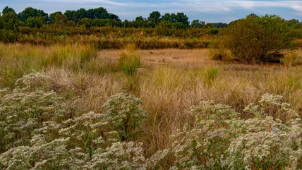 With 2,537 acres, Goose Lake Prairie is the largest remaining prairie in Illinois. Over half of the prairie is a designated nature preserve, so it's a peaceful and quiet place. The landscape here is a mix of marshland, tall grasses, ponds, and colorful wildflowers. Tall prairie grasses constitute 60% of the prairie, while broad-leaved flowering plants make up 40%. There are hiking trails to enjoy, and many opportunities for spotting wildlife around the site, plus a reconstructed cabin to visit.