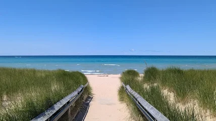Portage Lake meets Lake Michigan on the southern shore of Captain John Langland Park, a scenic public beach. Accessed by boardwalks over the dunes leading from the large parking lot, the vast park promises over a half-mile of pristine beach lapped by Lake Michigan waters. This park is ideal for swimming in the lake, lounging or strolling on the sandy shore, and fishing along the north pier where a historic wooden lighthouse once stood. There are also plenty of facilities, including bathrooms and gazebos with picnic tables. "Beautiful beach that isn't very crowded and off the beaten path," raved a Google reviewer. "Great place to have a fire, watch the sunset, enjoy the beach, and see great views." For more sandy stretches, head north to Arcadia, an underrated Lake Michigan town with uncrowded beaches.