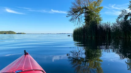 The state park also has over 8 miles of hiking trails through prairies, woodland, and lakeside areas. A 1-mile hike along the Woodland Trail past the 358-foot Native American effigy mound and through dense forest is a good way to see even more of the park if you need a break from the water. Meanwhile, the 2.4-mile Morningside Trail is the closest to the beach. It takes you through restored prairies in the park's northern reaches. It's also great for snowshoeing and cross-country skiing during the winter.